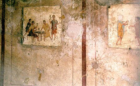 aristocratic women on the left and men on the right. Vatican Museum, Rome.