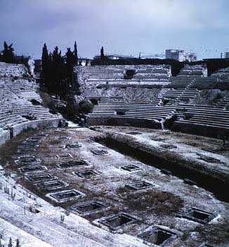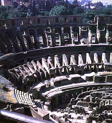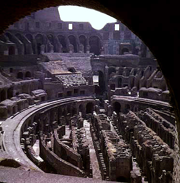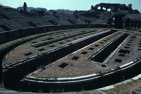 ruins of gladiators' practice amphitheatre; 1982; Rome