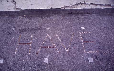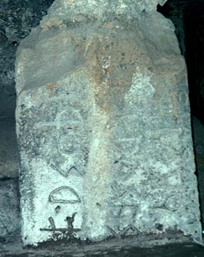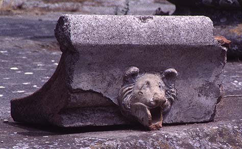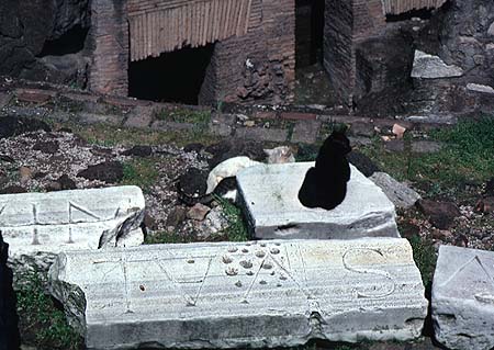 fallen section of inscription with modern "lion"--i.e., cat; 1979;