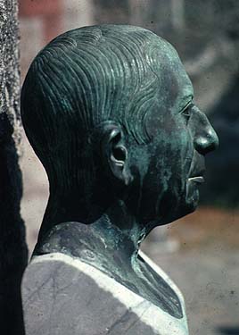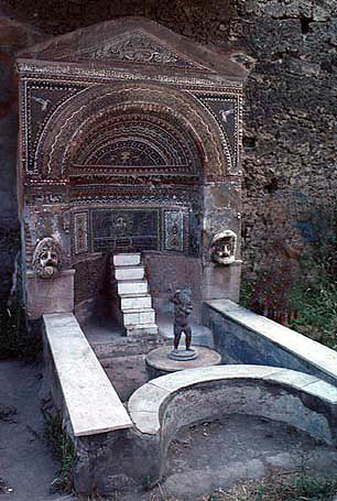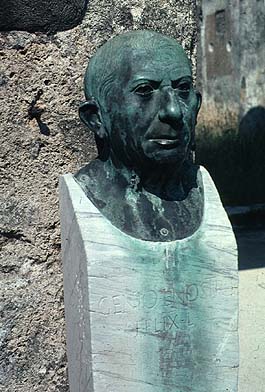 House of Caecilius: impluvium covered, copy of bust in situ; 1978; Pompeii