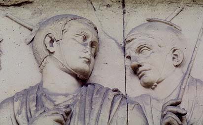 south side, detail, heads of Antonia minor and Drusus; 1978; Rome