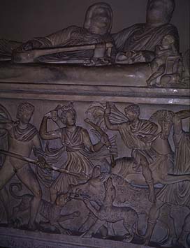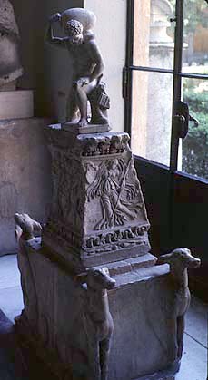 on elaborate base with 4 sculpted dogs and relief of maenad; 1977; Capitoline