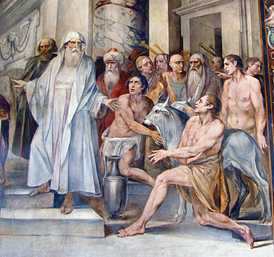 To him the Romans attributed a long list of religious and cultural institutions, such as organization of the priestly colleges, the creation of the Pontifex Maximus, the establishment of the Vestals (see G.Cesari's Numa Pompilius Establishing Worship of the Vestals), the calendar of festivals, and the construction of the Regia. Livy, however, calls his greatest gift to the Romans his achievement of peace with neighboring territories (see Livy, Ab Urbe Condita 1.18-22 and Plutarch's Life of Numa).